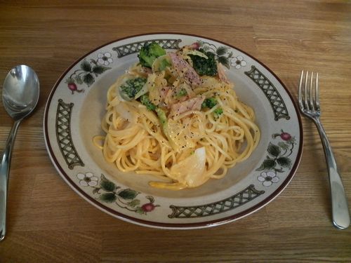 最後に写真ですが、左はこの間の振り替え休日に、久々に小生が作ったカルボナーラ。