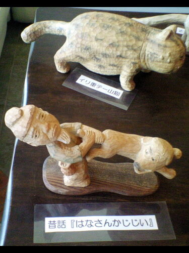 今日は何やら木彫りの彫刻が。